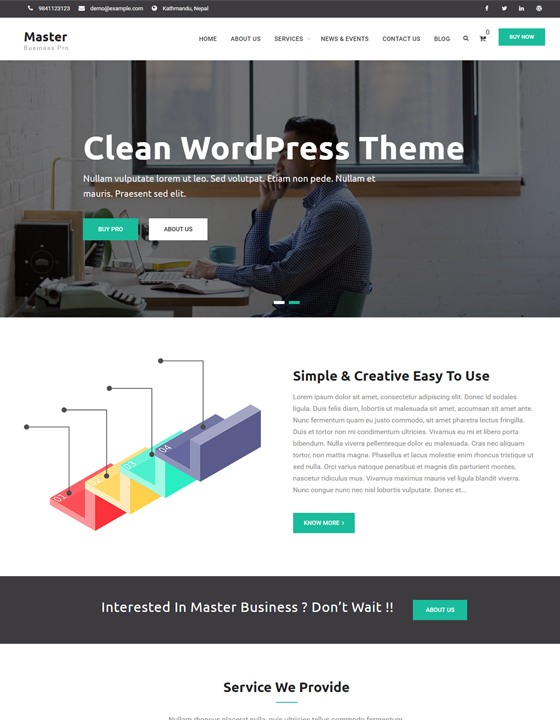 Master Business Pro is a simple yet elegant WordPress business theme. It would be an excellent choice for the startups and new business companies. Although this is suitable for the corporate business as well as the business websites, this theme could be used in different arena like portfolio, design, art and many more. Loaded with several handy features, it helps you to setup your site with ease. As theme is cross browser compatible and also supports responsive design, it would be an best tool to showcase your business in online world.