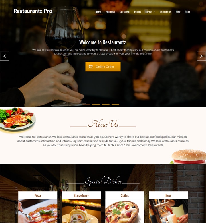 Restaurantz Pro is a clean and professional restaurant WordPress Theme perfect for Restaurant, Cafe,