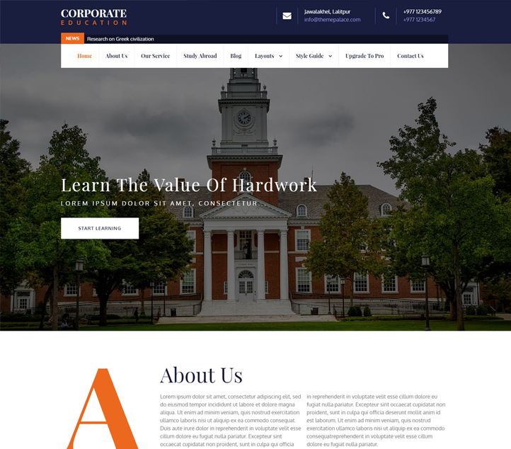 Corporate Education is a sleek Education WordPress theme that is solely dedicated to educational institutes and businesses alike. It has been carefully designed with crucial educational features to flaunt everything your organization has to offer. The theme is suitable for Schools, Colleges, and other academic institutes. The highly dynamic features in Corporate Education includes Layout Options, Features Slider, Styling, Menus, Breadcrumb, and more. Corporate Education can be adapted to any kind of industry – not only educational but also in any kind of academy. The theme is also WooCommerce compatible; it means you can also create your online store as well.