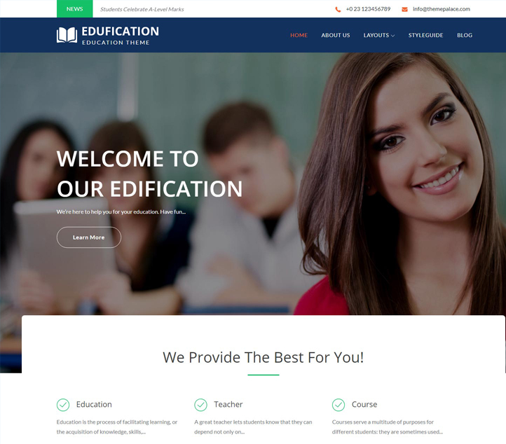Edufication is a multipurpose WordPress Theme specializing in the educational field. The theme fits perfectly for Schools, Colleges, Universities, Digital Agencies, and more. Edufication comes with adorable design and highly dynamic features that are sure to uplift your business. It comes with multiple color options and layouts so that you can play around with the design and feel of your site. Also, it comes with a wide variety of options so you can modify Layout, Styling, Featured Slider, Menus, Breadcrumb, Widgets and much more, directly from theme customizer.