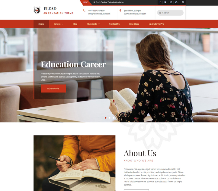 Another education dedicated theme is Elead. It is a clean and well-managed Education WordPress theme that allows you to build a strong education site in just a few minutes. The theme is ideal for Schools, Colleges, Universities, Consultancies, and more. Sections like Header Image, Menus, Breadcrumb, Widgets, Headline, Slider, Services, Courses, and more are added in Elead. These sections help you craft a striking education WordPress theme. It is not limited to educational purposes only but it can be used for other purposes too. This theme is translation ready and major browsers supportive.