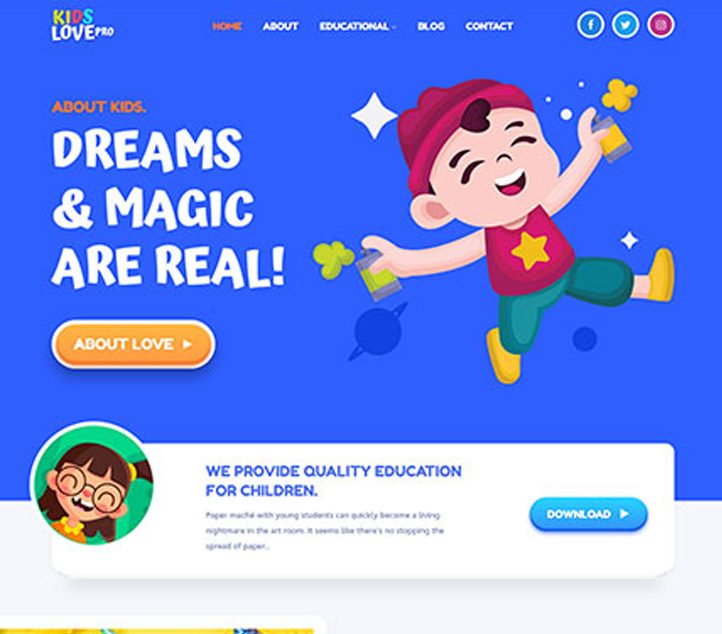 Kids Education is an educational theme for all education-related institutions. It is also a multipurpose theme that fits perfectly for corporates, blogs, and more. Kids Education theme can be used mainly for Kindergartens, Daycare, Primary Schools, Secondary Schools, High Schools, and more. With the colorful design, you can also use the theme for toy stores too. It comes with a wide variety of options so you can modify Styling, Featured Slider, Menus, Breadcrumb, Widgets and much more, directly from theme customizer. This theme is WooCommerce compatible and translation ready.