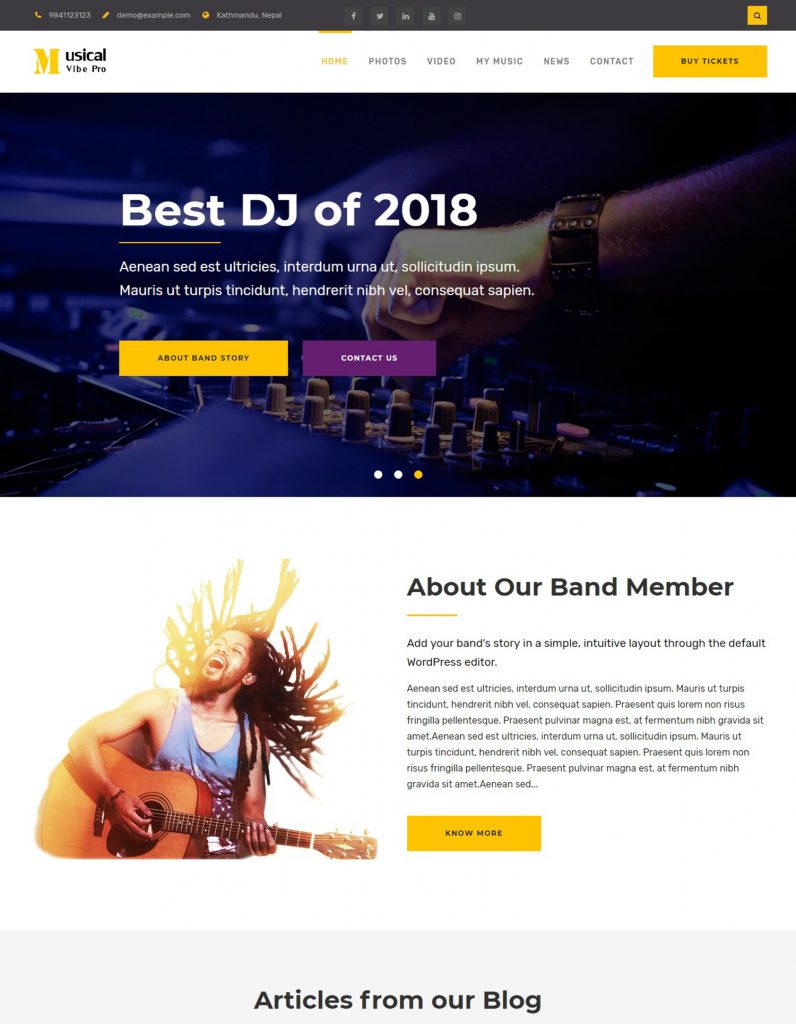 Musical Vibe Pro is a clean, simple and responsive WordPress theme. It is very suitable for musicians and other music related groups and musical bands. It is easy to use, user friendly and allows you to fully customize your website without having to work with code. The theme is attractive and pretty stylish which makes it a excellent choice for music related websites. It provides several useful features and theme options to customize your site as your requirement. Theme is translation ready and optimized for best performance.