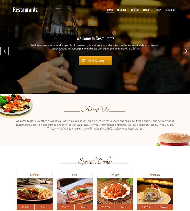 Restaurantz is a clean and professional restaurant WordPress Theme perfect for Restaurant, Cafe,