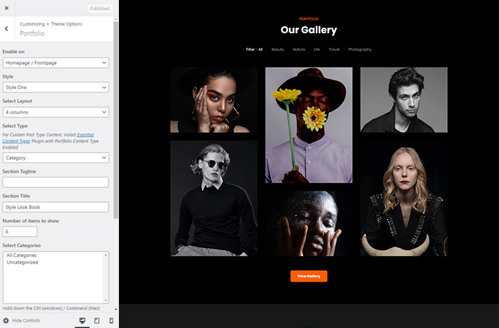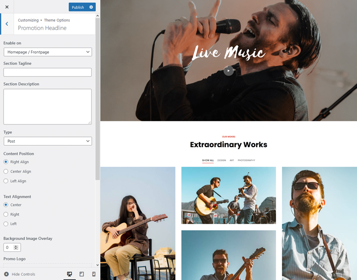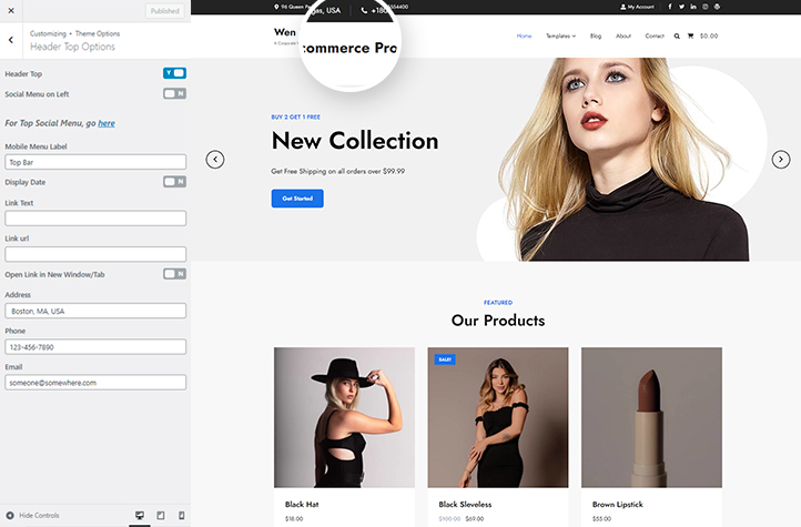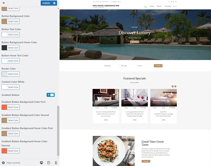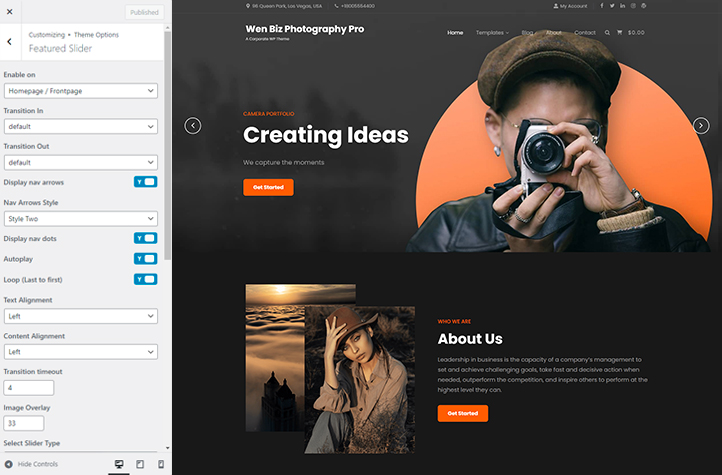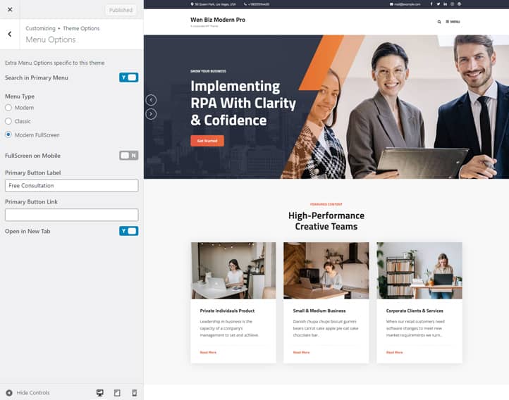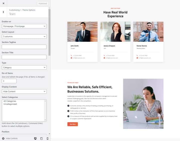 It includes many featured crucial sections and features. For instance, Site Design, Site layout, Manage section, Featured Slider, Featured Content, Testimonials, Team, Gallery, WooCommerce Support, and more. Moreover, it also comes with advanced color options. All of the sections are fully customizable and responsive.